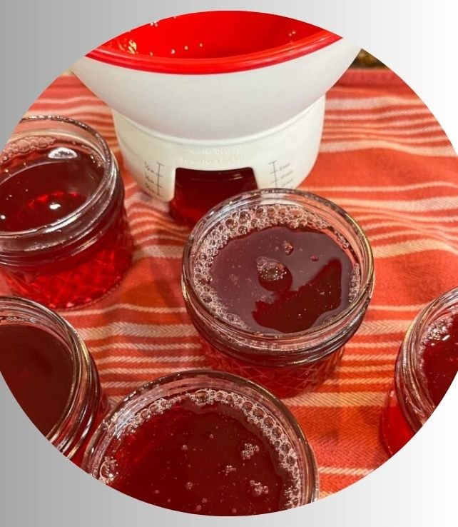 - Immediately begin ladling the hot jelly into your prepared, hot jars, leaving 1/4 inch of headspace.